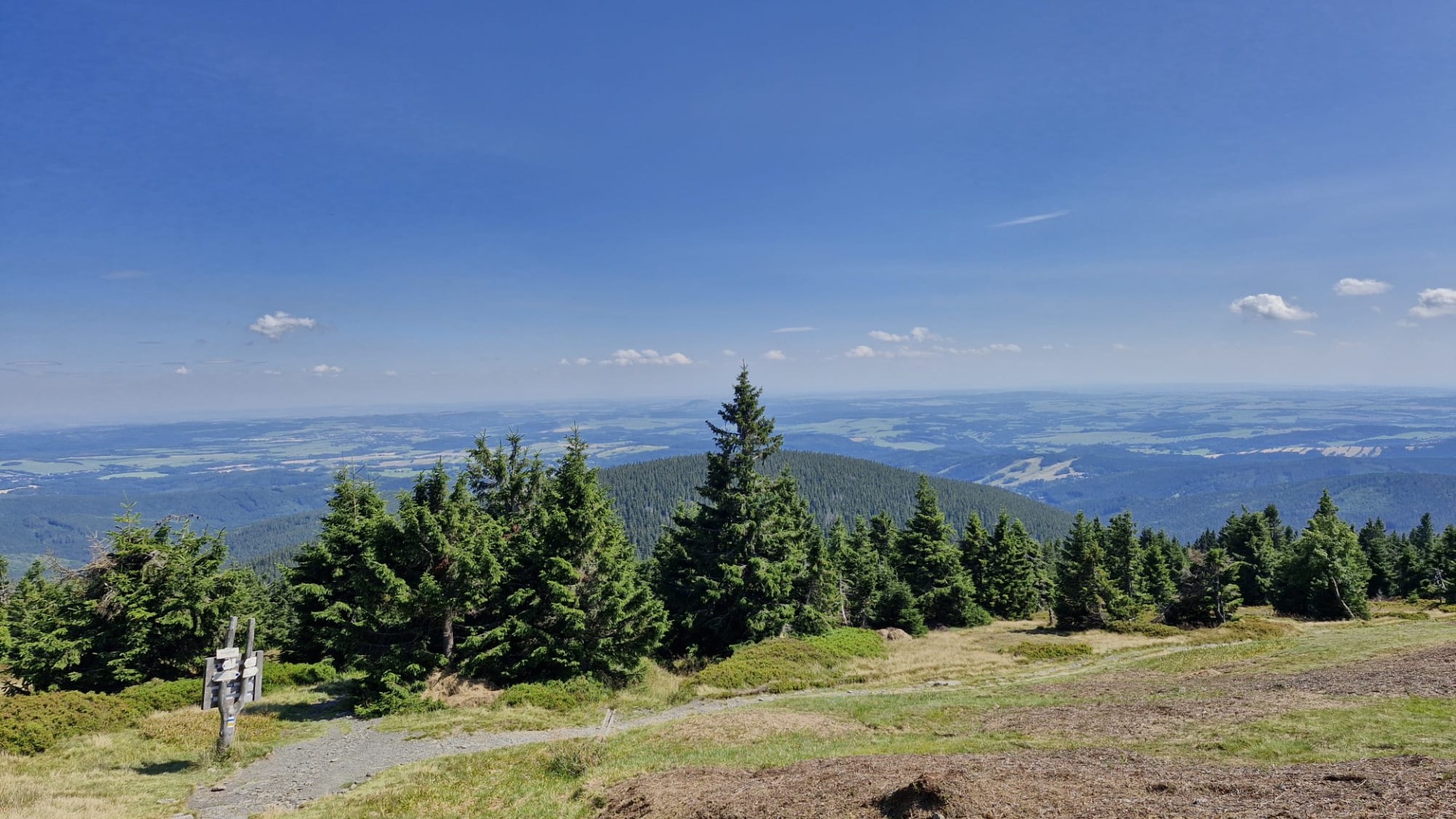 Doslova nás ten řev vyhnal k Prameni Moravy, kde byl klid. Na Kralickém Sněžníku končí trasa 3 a začíná Úsek 1 Via Czechia Českomoravská. Začíná právě na vrchole a končí u rakouských hranic u Slavonic. Kopíruje západní hranici Moravy.